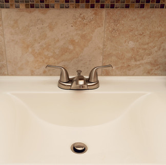 The Morton's shower is a perfect example of how design options can change for the better. Despite an original plan to install gray tile and paint the existing trim white, the Morton's opted for a tile more in the tan hues, while embracing the natural trim color already existing, thus matching the rest of the house. Unique to this particular job, a small niche was used, in comparison to the sizes typically installed in our constructed shower walls. For this particular design instance the vanity was kept, but a new countertop was selected. Coordinating with new towel bars and grab bars, the brushed nickel faucet brings a more updated look to the bathroom than the gold fixtures once in their place.